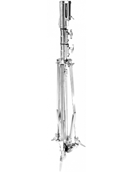 Stativet har en stålkonstruktion, et universalhoved med tredobbelt funktion med 1/8" (28 mm) og 5/8" (16 mm) og en hjulbaseret base. Hver riser er fjederdæmpet for at beskytte belysningsudstyr mod et pludseligt fald, hvis spændelåsen skulle løsne sig. Maksimal bæreevne: 40 kg, maks. højde: 4,28 m Universelt hoved med tre funktioner med et 1/8" (28 mm) og 5/8" (16 mm) receiver med multidirektionel 5/8" (16 mm) stift. Alle spændelåse af metal med aluminiumskonstruktion Fjederdæmpet for at beskytte inventar ved sænkning og har en hjulbaseret base Begrænset 2-års garanti