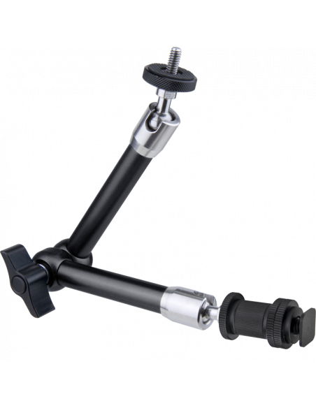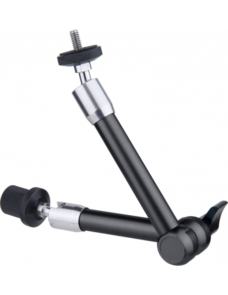 Denne præcisionsfremstillede ledarm er designet til at holde field monitors eller tilbehør. De to 1/4"-20 gevind i hver ende er fastgjort til kugleled, der kan drejes 360 grader, og en udskæring i muffen, der omgiver kuglen, gør det muligt at dreje gevindet 90 grader.