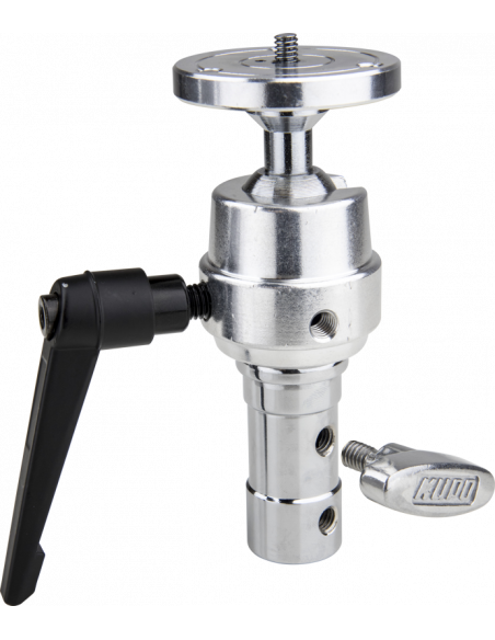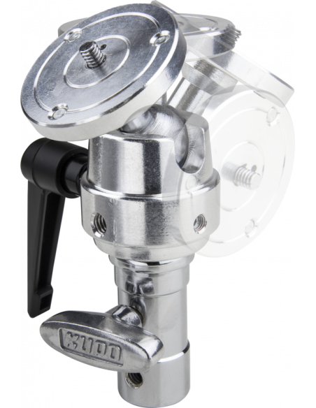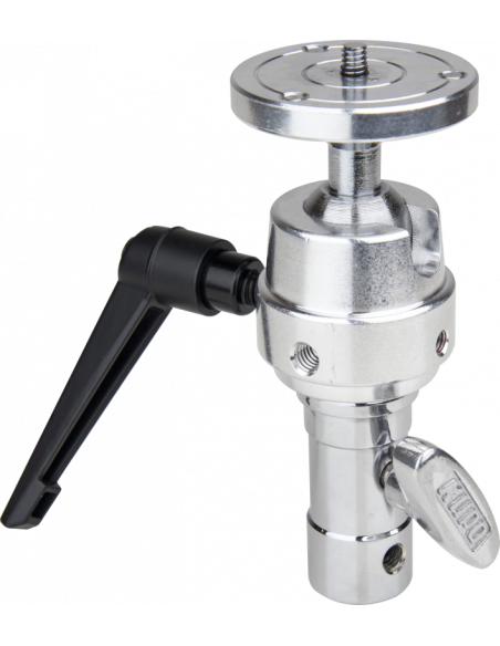 Dette Super Grip er fremstillet af kraftigt metal og har et kuglehoved med et 1/4''-20 gevind med stift på en rund kameraplade og en TVMP-adapter.