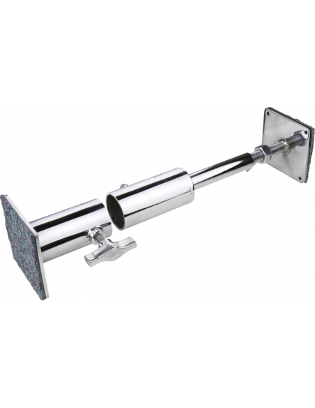 Designet til en baggrundsstøtte eller en overheadbjælke til at hænge belysningsudstyr på ethvert 1-1/2" rundt rør. Sæt rør i hver ende af vægsprederne og justering af stiftene sikrer en tæt pasform til væggen.
