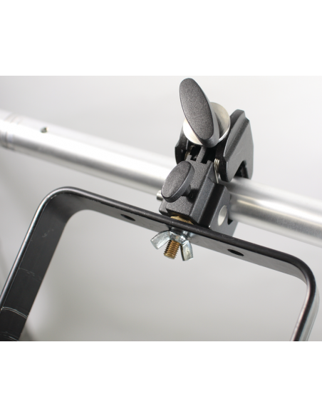 Dette er en adapter til Convi Clamp. Den er nem at montere på et belysningsudstyr med M10 gevind og butterfly-håndtag. Forbundet med Convi clamp med 5/8" (16mm ) stift.
