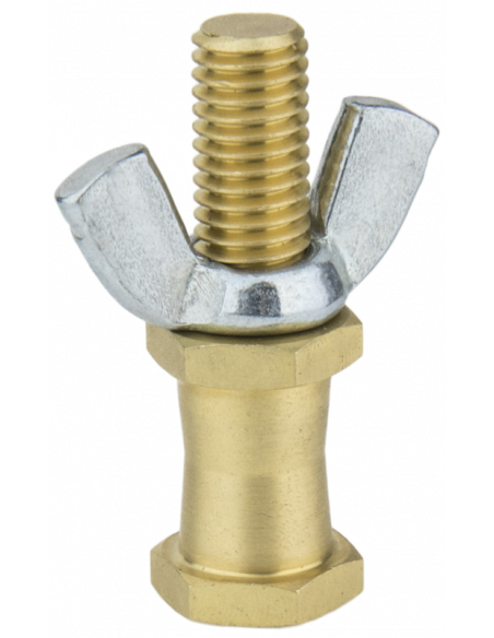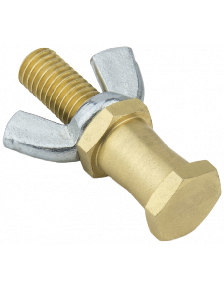 Sekskantet stift af solid messing kommer med M10 gevind og vingemøtrik til fastgørelse af bøjlen for en hurtig tilslutning til Convi Clamp.