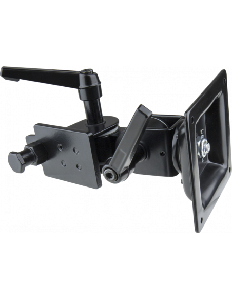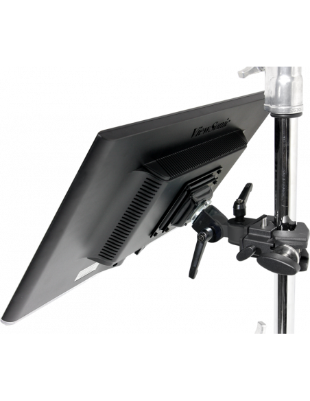 Denne robuste adapter gør det muligt at montere monitorer på op til 8 kg på enhver clamp med en sekskantet receiver som f.eks. Convi Clamp og fastgøre klemmen til en stang. Adapteren kan panoreres og vippes og låses fast med to ratcheting handles i metal.
