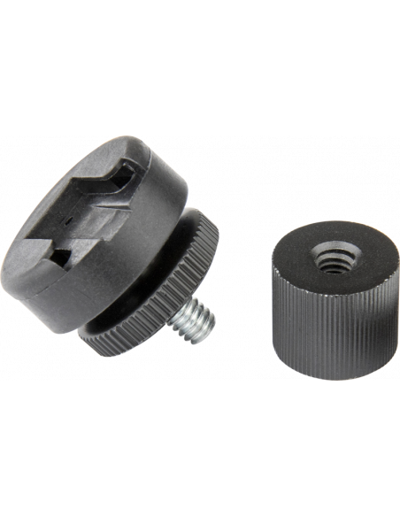 Kupo Cold Shoe Mount med 1/4" gevind er fremstillet af sprøjtestøbt plast for at forhindre elektrisk kontakt. Den leveres med en 1/4-20"-skrue der har et fingerskrue som holder den på plads.