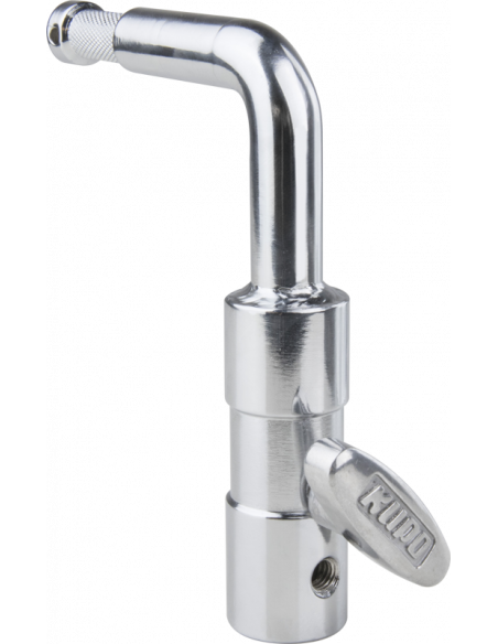 Den er designet til at eliminere barn door interferens ved placering af et belysningsudstyr. Omdannes til junior stud efter fjernelse af drejeknap Riflet hals Drejeknap af aluminiumsstøbning med støbt stålstift Fremstillet af forkromet stål