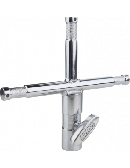 Gør det muligt at montere 3 stk. belysningsudstyr med én adapter Leveres med tre 16 mm (5/8") baby han-pins og en 16 mm (5/8") baby-receiver Forvandler junior stud efter at fjerne drejeknap Riflet hals Fremstillet af forkromet stål