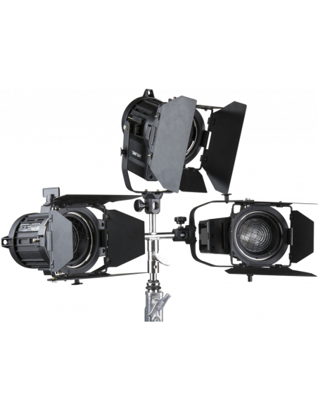 Denne adapter er fremstillet af solidt stål og leveres med tre 16 mm (5/8") baby han pins og en 16 mm (5/8") baby-receiver. Ideel til montering af tre lys på et C-Stand.