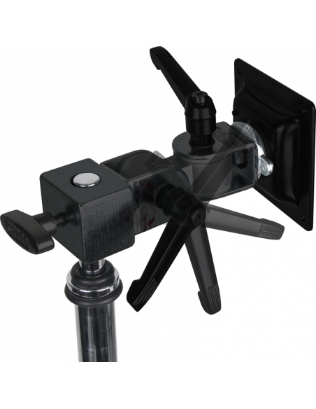 Denne robuste adapter giver dig mulighed for at montere monitors på op til 8 kg på enhver baby pin. Har en baby receiver, som kan monteres med en monitor på en stand top eller ethvert monteringstilbehør med en baby pin. De to vinkeljusterbare håndtag er nemme til lette panoreringer/tilt.