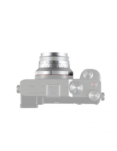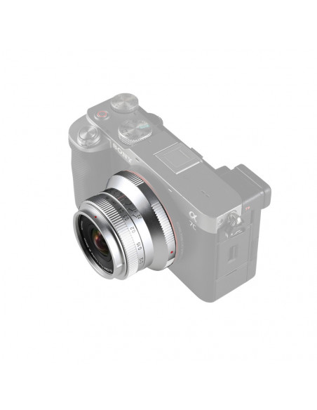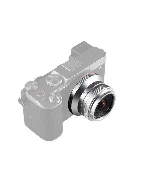 Cookie sized, epic wide angle! TheLaowa 15mm f/5 Cookie FF â Silver Sony FE (Auto Aperture) an unrivalled pancake style 15mm ultra wide angle lens specially designed for Full frame mirrorless cameras. An auto aperture function is included in Sony E mount to improve the overall user experience. The lens weighs only 158g and offers a remarkable 110° angle of view. Besides the usual black colour, there is also a stylish silver option that photographers can mount on their camera. It is an ideal lens for photographers looking for a fun go to lens for their casual street, landscape and everyday photography. Just grab this little âbiscuitâ to take more photos. Highlights Unrivalled pancake style 15mm ultra wide angle lens Ultra wide 110° angle of view Focus range of 12 cm Automatic aperture function Compact and lightweight design The Cookie illustrates the convenience of pancake style lenses with its super compact and lightweight design of just 158g. Thanks to its portable shape, this lens can also be used as a lens cap, making it easy to shoot handheld in any situation. Ultra wide 110° angle of view Despite its pocket size, the Laowa 15mm f/5 Cookie lens offers a remarkable 110° angle of view. This ultra wide perspective is perfect for capturing breathtaking landscapes and a wide variety of scenes, allowing photographers to tell compelling stories with their images. 12 cm focus range With a close focusing distance of just 12 cm, this lens enables impressive close up photography, allowing photographers to explore the intricate details of their subjects while maintaining the expansive background of wide angle lenses. Auto aperture function The automatic aperture function significantly improves the user experience. It simplifies the shooting process and allows photographers to focus more on their creative aspects and composition without the hassle of manual adjustments. Thanks to electrical contacts, it also effortlessly captures detailed lens settings in the photo's EXIF data. 39 mm built in filter thread The lens has a 39 mm built in filter thread, allowing photographers to easily attach screw in filters directly to the lens for enhanced effects and better image quality in different lighting conditions. Stunning 10 point Sunstar effect Capture stunning Sunstar effects with the lens' unique 10 point aperture design, creating beautiful starbursts in images. This effect can easily be created when shooting with a strong light source. , Lens 15mm f/5 Cookie FF Format: Full frame Focal length: 15mm Aperture range: F5 22 Angle of view: 110° Lens structure: 13 elements in 9 groups Aperture: 5 (Sunstar) Min. Focus distance: 12cm Max. Magnification: 0.2X Focus system: MF Filter thread: Ã39mm Dimensions: ø53mm x 35.2mm Weight: 138 g Colour: Silver Mount: Auto Aperture