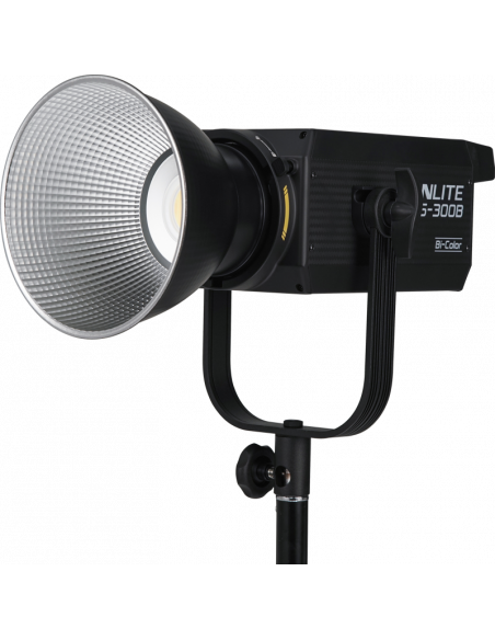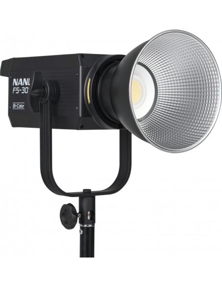 FS-300B har et fremragende belysningsniveau, en glimrende ydelse med to farver, problemfri software-/hardware integration og en tegnebogsvenlig pris. Lyset er udstyret med en stor lysdioderække og en præcisionsfremstillet reflektor og udsender 38.720 lux ved 1 m (5.600K). Samtidig opretholdes en høj CRI/TLCI-værdi på 96/97, der sikrer præcis farvegengivelse.Lyset har et konstant output under ændring af CCT-intervallet hele vejen fra 2.700-6.500K, når det er i tilstanden for konstant output. I tilstanden maksimal output gives der prioritet til lysstyrken for at sikre tilstrækkeligt lys. Denne professionelle funktion sparer tid, da gentagne lysjusteringer under optagelserne undgås, og sikrer bløde overgange i kameraet.FS-300B har 12 indbyggede praktiske effekter, der kan justeres for lysstyrke, farvetemperatur og hastighed. Det gør det muligt at bruge FS-300B til mange forskellige scenarier til at simulere avancerede lyseffekter med simpel betjening og giver derfor brugerne en tilfredsstillende oplevelse med lyseffekter.LED-lyset består af en alt-i-1 struktur, en brugergrænseflade med to håndtag og en knap samt et OLED-display, der giver mulighed for nem og intuitiv betjening. Det har også genveje til forudindstillinger, der forenkler kontrollen ved hurtig aktivering af indstillinger.Det indbyggede modul med Bluetooth og 2,4 GHz understøtter trådløse kontrolenheder (valgfrie) og kontrol via appen Nanlink, så du kan justere flere indstillinger, herunder DIM, CCT og specialeffekter, efter ønske. FS-300B kan også bruges til professionel gruppekontrol ved hjælp af appen Nanlink.Den kraftige blæser sikrer, at FS-300B kan klare hård og lang tids brug i marken og garanterer lysets serviceliv. Blæseren kan slukkes for at fjerne generende støj ved opgaver med strenge krav til lyd (den maksimale outputeffekt er 25 %, når blæseren er slukket). Vigtige specifikationer: Kraftig effekt Variabel farvetemperatur i intervallet 2.700-6.500K Konstant output under ændring af CCT Kraftig blæser Tegnebogsvenlig pris