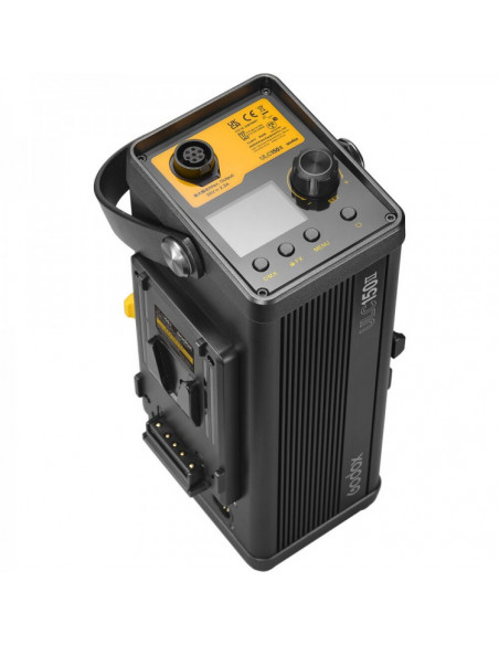 Godox UL150 II Silent LED Video Light ved hjælp af et blæserløst køledesign er en dagslysbalanceret 155W LED monolit-lignende lyskilde designet til udsendelse, kinematografi, livestreaming og andre videoapplikationer med lyd. Den kan drives med valgfrie V-monterede batterier og styres via Godox-appen, DMX eller via den opgraderede eksterne controller. Der medfølger en AC-adapter til brug i studiet.