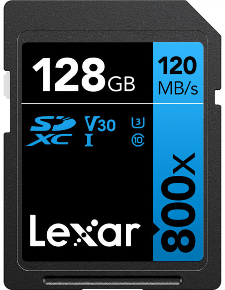 Lexar Professional 800x SDXC UHS-I cards, C10 V10 U1, R120/45MB 128GB