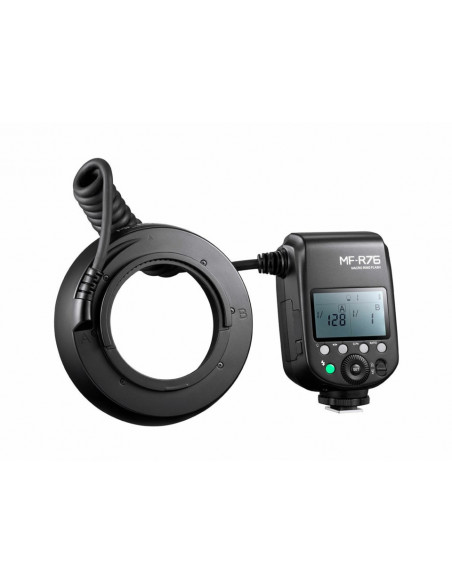 MF-R76 Macro Ring Flash fra Godox oplyser dit motiv med et blødt og jævnt lys, som er ideelt til nærbilleder. Ringlyset består af to komponenter: Controller til kameraets hotshoe, og ringflashen som monteres på dit objektiv