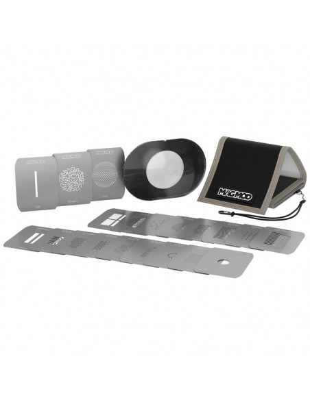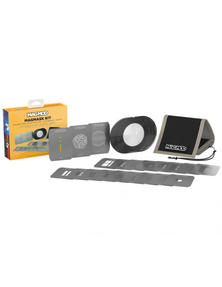 Transform any ordinary scene into a visually stunning photograph The MagMod MagMask Kit 2. is perfect for photographers who want to add a unique artistic touch to their work. It offers control over light shapes, forms and patterns. Highlights Increases flash distance Perfect for challenging flash photography of wildlife Fresnel lens focuses light for precision Foldable for easy storage MagBeam Wide Lens The Wide Lens lets you project unique MagMasks patterns onto your subject using the power of your flash and the magic of the fresnel lens. MagMasks The MagMasks easily attach to your MagBeam and allow you to project patterns and shapes onto your subject or background using the light from your flash. MagWallet The MagWallet is a convenient way to store and carry all your MagMasks., Material: Polycarbonate, Steel Weight: 256 g Dimensions: 15 x 12 x 6 cm 2 year warrant , 1 x MagBeam Wide Lens 20 x MagMasks 1 x MagWallet