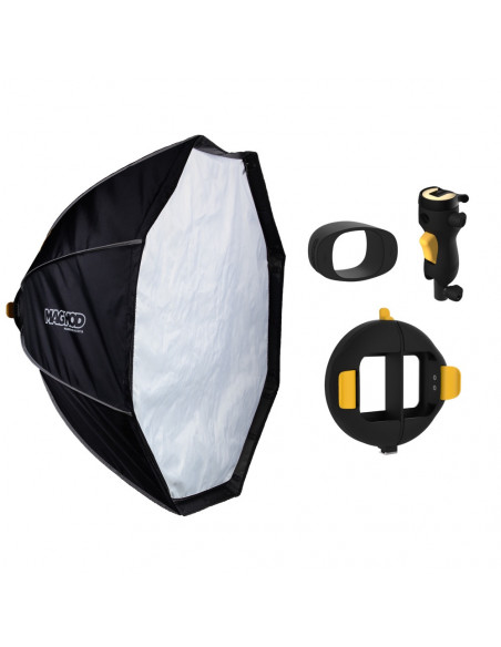 Professional and creative The Magmod MagBox PRO 42 Octa Starter Kit offers both ease of use and the ability to achieve professional, creative results, making it an excellent choice for both amateur and professional photographers. The kit includes MagMod Magbox Pro 42 Octa, Magshoe 2 , Magring 2 and the MagGrip 2. Highlights The Magbox provides soft light and a diameter of 106 cm Quick and easy to assemble The Magshoe is sturdy and ergonomic The MagGrip 2 fast and secure attachment of modifiers MagRing 2 is also suitable for flash units with a round head MagMod Magbox Pro 42 Octa If you like soft light, you'll be super happy with the MagBox Pro 42" Octa. This great new Octabox has time saving features like the super fast zippered diffuser (with integrated built in storage compartment!) magnetic Grid (sold separately) for light control, easy installation and integrated gel slot, making it the fastest, easiest and most awesome octabox for photographers ever. Magmod MagShoe 2 The MagShoe 2 is the upgraded, even sturdier, universal, ergonomic bracket for cold shoe connections that you can operate with one hand. Slide your flash in, turn the lock 90 degrees and you're done. This is a must have for any photographer who wants to work faster, easier and more awesomely. MagMod MagRing 2 While the original MagRing's unique approach to single or dual speedlite mounting is unique, the new MagRing 2 is now happy to allow round flashes into the lightning fast speedlite mounting party. The quickly detachable centre panel makes it easy to change between a traditional speedlite flash or a flash with round heads in seconds. MagMod's design ethos of universal flash compatibility is like having your cake and eating it, too. MagMod MagGrip 2 The innovative MagMod MagGrip 2 is the magnetic base for MagMod's modular system for reportage flashes! No more fussing with Velcro or self devised systems. , Features MagMod Magbox Pro 42 Octa Zippered diffusion panel, with integrated storage compartment Optional magnetic Grid Durable lightweight rip stop shell Hassle free, quick installation and removal Mounting in seconds on MagRing or Speedring adapter Soft light with a large diameter Integrated gel slot for instant colour with MagBox gels (exclusive) Silver reflective interior Open and obstacle free centre Works with Speedlites or flashes (speed ring sold separately) Perfect for the studio, home or on the go 2 year warranty Features Magmod MagShoe 2 Universal ColdShoe attachment V2 update is sturdier, for larger Boxes Holds flash units securely in place with a durable locking mechanism Gold anodised top Large squeezable knob for easy and precise one handed angle adjustment Locks quickly, with slide and twist clamp Ergonomic pistol grip offers easy handling Works perfectly in combination with the MagRing Can be used on a lamp stand or by hand Compatible with virtually any Speedlight flash unit Includes 1â4 20 adapter for flash units such as the AD200 or to mount LED light panels and GoPro cameras. 2 year warranty Features MagMod MagRing 2 Quick and easy Versatile Allows the use of 2 flashes Removable centre fin for use with larger or even round flash units 2 year warranty Features MagMod MagGrip 2 For quick and secure attachment of modifiers Universal attachment that fits a wide range of speedlites, including flash units with round heads Made of durable silicone material Strong, secure and perfectly optimised magnets 2 year warranty , 1 x MagMod Magbox Pro 42 Octa 1 x Magmod MagShoe 2 1 x MagMod MagRing 2 1 x MagMod MagGrip 2