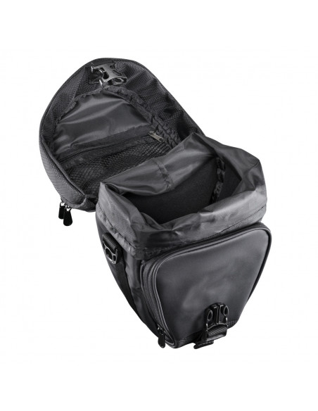 A mesh pocket in the lid of the bag and a zipped compartment on the front offer additional storage space for camera accessories. In them, you can store small items such as batteries, filters or storage cards.