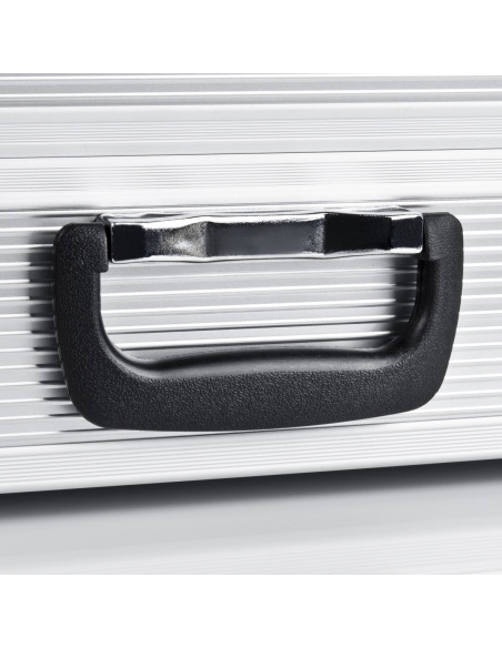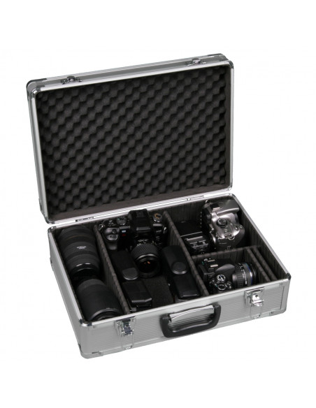 - 1x mantona aluminium case Basic M, silver, with 3 short and 2 long dividers, an additional foam plastic block and 2 keys