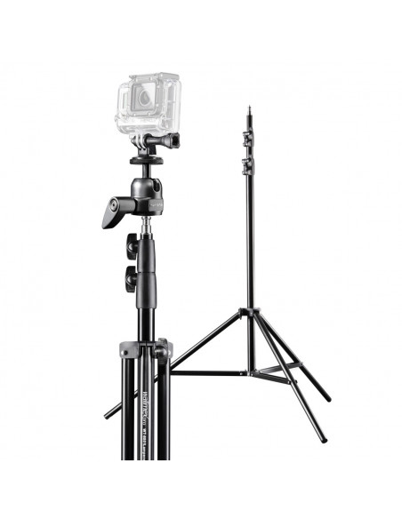Ideal for group selfies: No matter whether at a barbecue, at a photo shoot or the next family outing - capture special moments with your GoPro. To be able to film from an elevated viewpoint with optimal sight, this set offers you a sturdy lamp tripod, which can be extended to a height of 260 cm, with matching tripod thread to fasten your GoPro. The high quality ball head, which is also included in the set, gives you even more flexibility during shooting.