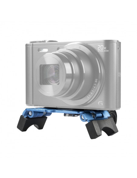 The mantona bicycle fastening can be simply and quickly attached to handlebars, tubes and other round objects. With the long Velcro strips, which are attached in an X-shape pattern, the plate is also suitable for bigger tube diameters. The sturdy aluminium fastening is additionally equipped with small rubber coated legs, which raise the plate and additionally protect it against vibration. Video recordings are thus ideally stabilized and with the ¼ inch thread various devices - no matter whether smartphone, Action-Camera, camcorder or system camera - can be attached. Due to the Velcro strips this fastening device can also be mounted on other objects. The small tripod legs can additionally be extended and provide a stable stand, if the fastening device is used as a table tripod.