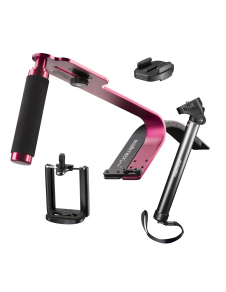 The hand pod from mantona is the ideal companion when filming or taking photos with the GoPro Hero or the smartphone. The sturdy aluminium pod can be infinitely extended and is quickly and simply locked. With its low weight it is perfect for Selfies and with the bigger diameters of the pod extensions it is also suitable for optimal stabilisation of video shootings. The pod comes with a rubber coated smartphone adapter, which provides optimal hold for your mobile phone and prevents it from slipping out. With the pod head you can quickly and simply vary both the alignment and the perspective. The GoPro adapter with ¼ inch adapter can also be easily adapter and connected to the camera. The camera strap additional protects your equipment during use