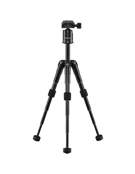The mini-tripod with a fashionable design has a load capacity of 5 kg and is perfectly suitable for large reflex cameras – and it only weighs 740 g. Sturdy rubber feet, a twist lock for four sections and three angle adjustments ensure the tripod will stand firmly on any type of terrain. Thanks to packing dimensions of only 13.5 cm, this tripod made from light aluminium can be comfortably carried and is perfectly suited for travel and outdoor activities. A tripod bag is also included.