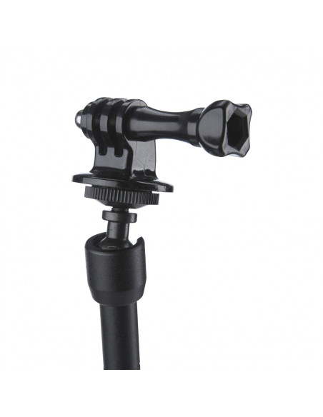 This swivel arm is ideal for use with action cams, smartphones, light cameras up to approx. 500 g or equipment such as LED lights, microphones and much more. An infinite number of devices can be variably positioned and securely fastened. Ideal e.g. for mounting your action cam via the housing or open frame. This swivel arm also is ideally suited to placing your equipment in unusual positions, or on tripods and autopoles for special perspectives.