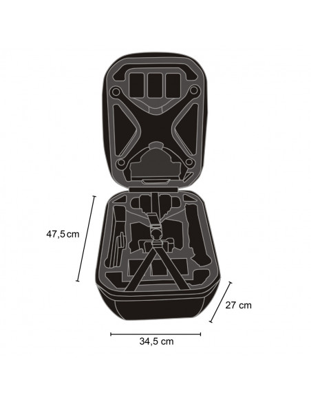 The inlay made from hard foam is cut to the shape of the Phantom 3. It has room for drones, 3 batteries and controllers, and a separate compartment for sensitive rotor blades. A special security belt also holds the drone in place. The hard foam lid offers additional thorough protection.