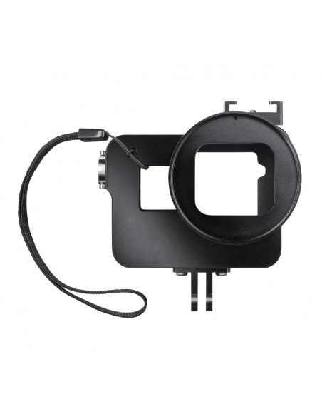 The mantona Magic aluminium cage is a light, yet extremely robust fastening unit for your GoPro Hero6 Black and Hero5 Black. The action cam is simply slid from behind into the housing and secured with a fastening plate. This means the screen and all connectors remain accessible and can be used without any problems. The Magic aluminium cage can be connected quickly and easily to all compatible fastening units with usual GoPro mounts and offers a wide range of useful functions. The black anodised aluminium housing is made in CNC and has a comfortable and practical back plate to securely close the frame. The GoPro Hero5 Black can also be held in place using the fixation screw included, avoiding shake, or secured using the strap. Your action cam will always be securely and precisely attached in the housing, and is also protected from large shocks and stresses.