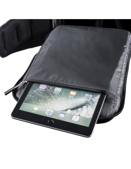 The spacious and modular inner partitions offer room for a DSLR or system camera with a lens, and an additional two to four lenses plus many items of equipment. Thanks to the six different and moveable partitions, you can adjust the rucksack to your equipment. The additional zip compartment in the back cover provides room for additional accessories, personal valuables or even a tablet incl. cover up to a size of 7.9 inches (width of the compartment 20 cm).