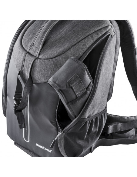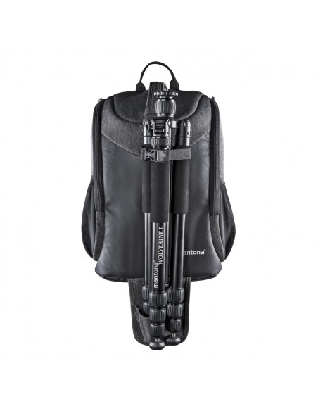 On the sides of the photo rucksack, there are additional stretch net and additional pockets for accessories or drinking bottles. On the front, there is also a practical tripod holder that is only visible if necessary. The main compartment of the mantona Tallinn photo rucksack can only be opened from the back so that the camera equipment is secure from theft in a crowd.