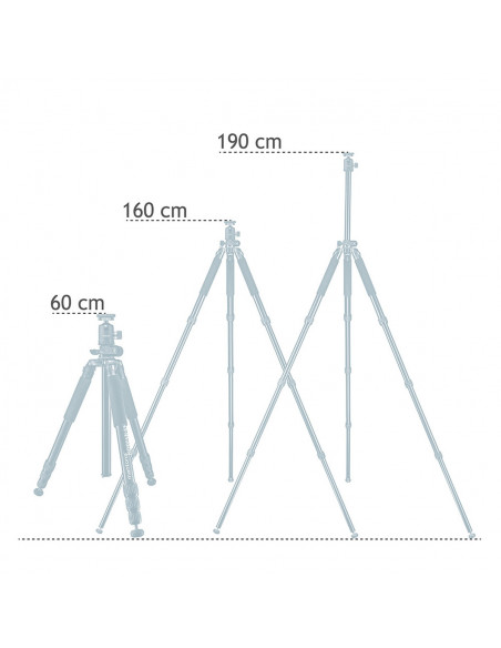 The tripod's legs angle can be adjusted by means of the ergonomically formed locking clips in 3 steps. Very voluminous and stable tripod legs made of aluminium with diameters of 32, 28, 25 and 22 mm provide for a safe footing - due to the integrated spikes and the stabilizing hook even on soft terrain like bog, snow and ice.