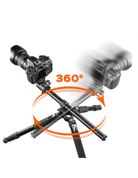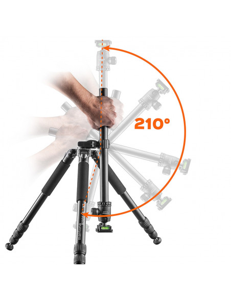 - 210° foldable and 360° rotatable center column due to innovative tripod shoulder construction
