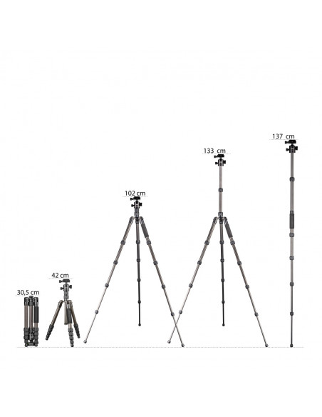 Despite its compactness, the light traveller offers a maximum working height of 133 cm. For macro photography, the tripod can be set into reverse position to make ground level photography easier.