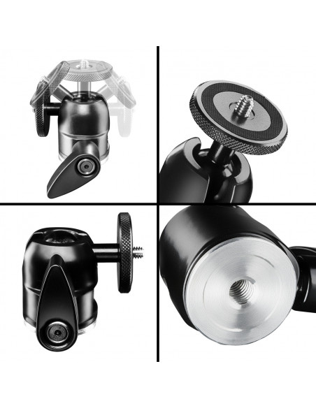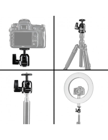 The Ball Head Small is thanks to its low weight particularly suitable for the use on mini tripods. The high-grade metal workmanship provides a maximum load capacity of 6 kg for digital and compact cameras. With the Head you can work even in portrait and landscape format, so that you can position your Head especially flexible.