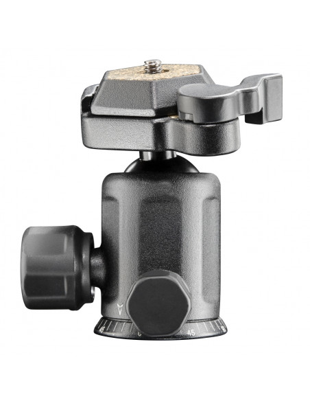 With its classic design, this ball head ensures precise camera control and very smooth movements in all directions thanks to its fine details. It has a maximum load of 4 kg and is very light, weighing only 250 g. The workmanship is of high quality and the operation of the ball head and the quick release plate is extremely intuitive and comfortable. The neatly constructed mechanics ensure excellent functionality, clean panoramic pans and long-lasting enjoyment of this lightweight ball head.