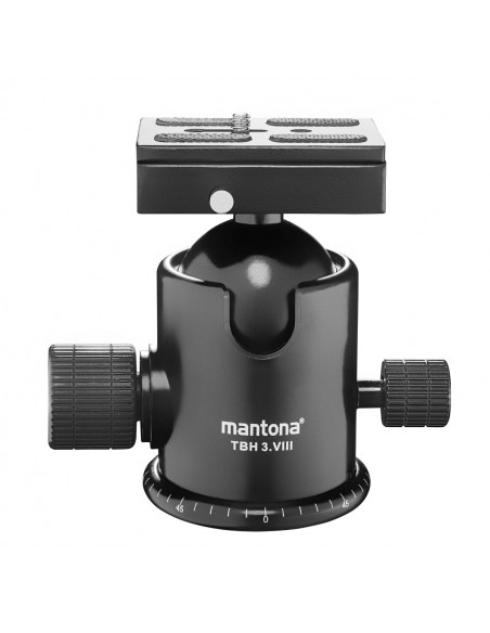 The Mantona TBH 3. VIII is the ideal ball head even for very heavy photo equipment. Due to its solid construction, it offers a maximum load of 25 kg. This makes it ideal for use with long exposures and in landscape, animal and architectural photography. This tripod head also holds heavy cameras, spotting scopes, binoculars and telephoto lenses exactly in the desired position. Thanks to the large control knobs including friction control, it also offers very comfortable handling.