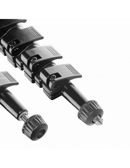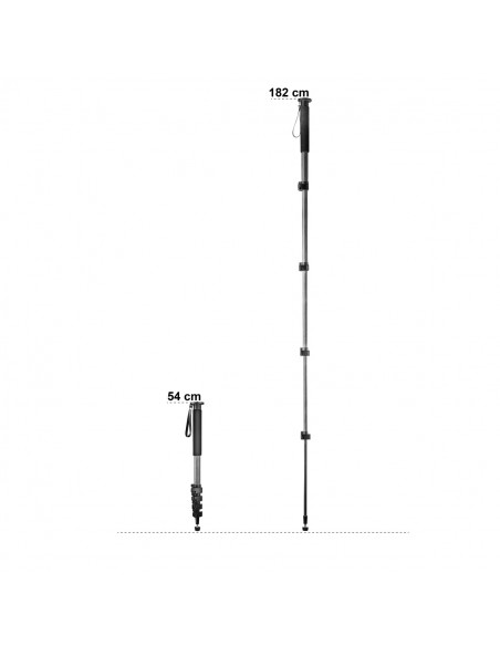 The mantona UNA 44C monopod is particularly stable and of a high-quality, intended essentially for sport and action photography, for example. The huge maximum working height of 185 cm (excluding head) over 5 extractable sections of this monopod is easy to use thanks to its practical quick locks. The foam rubber coating on the grip ensures not only that it can be held securely, but is easy to handle in difficult conditions.