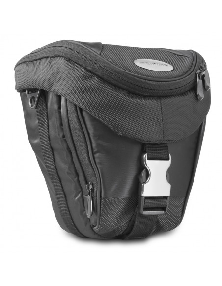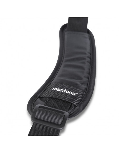 The bag is closed with a clip on the front. The mantona Neolit Holster Bag comes with a carrying handle as well as a removable shoulder strap which is ergonomically shaped and padded in the shoulder area.