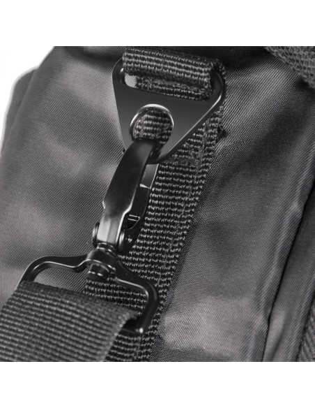 The bag is closed with a metal clip lock. This lock not only looks noble, but, just like the snap hooks on the carrier belt, provides special stability and safety.