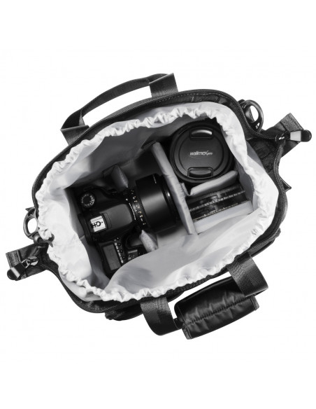 Function and design of the mantona Nephrit camera bag remind you of a doctor's bag. It is characterized by its convenient, large opening, which enables quick access to its contents from above. This combination of handling comfort and camera protection provides you with a really clever transport solution.