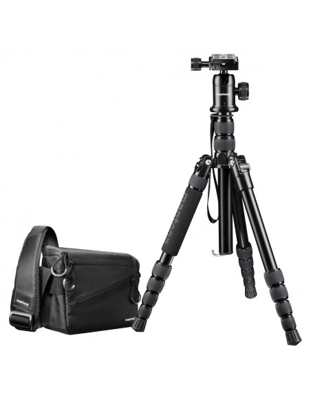 - 1x mantona travel tripod DSLM Travel, 143cm, ideal for DSLMs, incl. ball head with panorama scale and two bubble levels, quick-release plate, bag