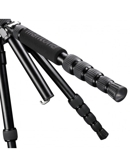 Particularly convenient: The tripod can also be used as a monopod. The monopod can be extended by means of the extendable two stage centre column. The centre column has a weighting hook, which can be used to hang up weights for stabilizing the tripod. The ball head is equipped with a convenient panorama scale, changing to portrait format is possible without any problems. For exact alignment the ball head has two convenient bubble levels - one for portrait and one for landscape format. With a ¼ inch and 3/8 inch tripod screw the camera can either be mounted with a quick-release plate to the head or directly on the tripod.