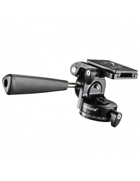 Robustness, movability, flexibility and precision are characterizing this 3D Panhead from mantona and make it to an ideal companion. Whether in studio or on location, the Panhead can be used everytime and everywhere. Thanks to its panorama, tilting and lateral tilting movements, it provides the precision and flexibility, which you need for your shootings. That means, that you can change between landscape and portrait format within seconds. You will be supported by one removable swivel arm, which ensure precise control with less effort. A quick-release plate with 1/4 inch camera connection is certainly given as well as 3/8 inch tripod connection. Besides, the scale help you to get unique panorama shootings.
