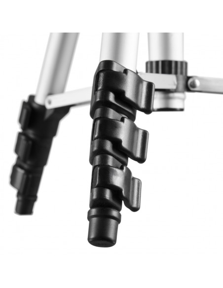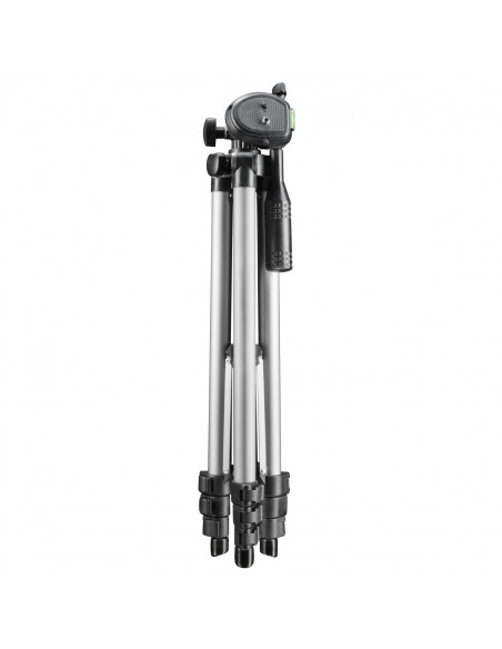 This compact tripod was devised for outdoor use and is ideal for simply putting it into your backpack or carrying it on your shoulder in the included tripod bag. A 3-way head with bubble level facilitates the adjustment of the right picture detail. A secure stand is guaranteed by a star which additionally fixates the tripod legs. The height of the extendible center column can be adjusted flexibly.