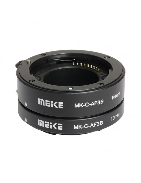 This two piece intermediate ring set from Meike makes the small world big, ideal for macro photography. A spacer ring is placed between your lens and your camera. This allows you to get closer to the subject and makes the subject appear larger in the picture. A spacer ring is hollow, it does not contain a lens system and therefore does not change the quality of your lens. Intermediate rings work best with telephoto lenses. All automatic functions of your camera are retained. The set consists of two separate parts that can be used independently or together. This way you can choose between 10mm, 16mm or 26mm and get closer and closer to your subject.