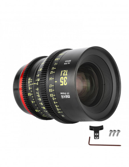 The Meike 35mm T2.1 Full Frame Prime Cine Lens features a 45mm image circle for full frame and large format sensor coverage. This prime lens has a fast T2.1 maximum aperture, standard 0.8 MOD focus and iris gears, and an 11 bladed iris for smooth, rounded bokeh, and is suitable for camera's such as the Sony Venice LF, Z Cam F6 and Sony FX9 but also covers Super35 and APS C sensor camera's.