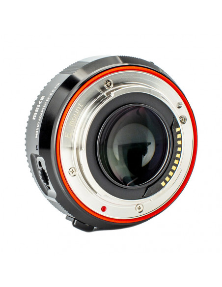 Meike EFTE 0.71X Speedbooster Lens Mount Adapter ( Sony E Mount ) The EF to E adapter with 0.71x focal length can combine EF lenses with Sony E S35 film camera or APS C camera to reduce focal length 0.71 times, improve luminous flux and increase aperture by one gear. It supports auto focus, auto aperture, anti shake and other lens functions., Model: MK EFTR 071X C Material: Stainless steel Camera mount: Sony E mount camera (APS C) Mount: EF series lens (FF) Dimension: Φ69 X 22.6 mm Weight: 167g 2 year warranty
