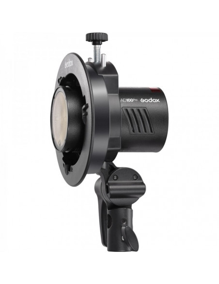 Godox S2 Speedlite BracketAdjustable to fit most speedlites, the Godox S2 Speedlite Bracket lets you maximize the potential of your on-camera flash while allowing you to use Bowens accessories. The bracket supports your flash either vertically or horizontally, employing non-scratching, light pressure rather than touch-fasteners or tape. Light modifiers such as reflectors, softboxes, and snoots mount to the front of the bracket as they would on a Bowens flash head. The bracket tilts nearly 180 degrees and has a 5/8" receiver for stand mounting.