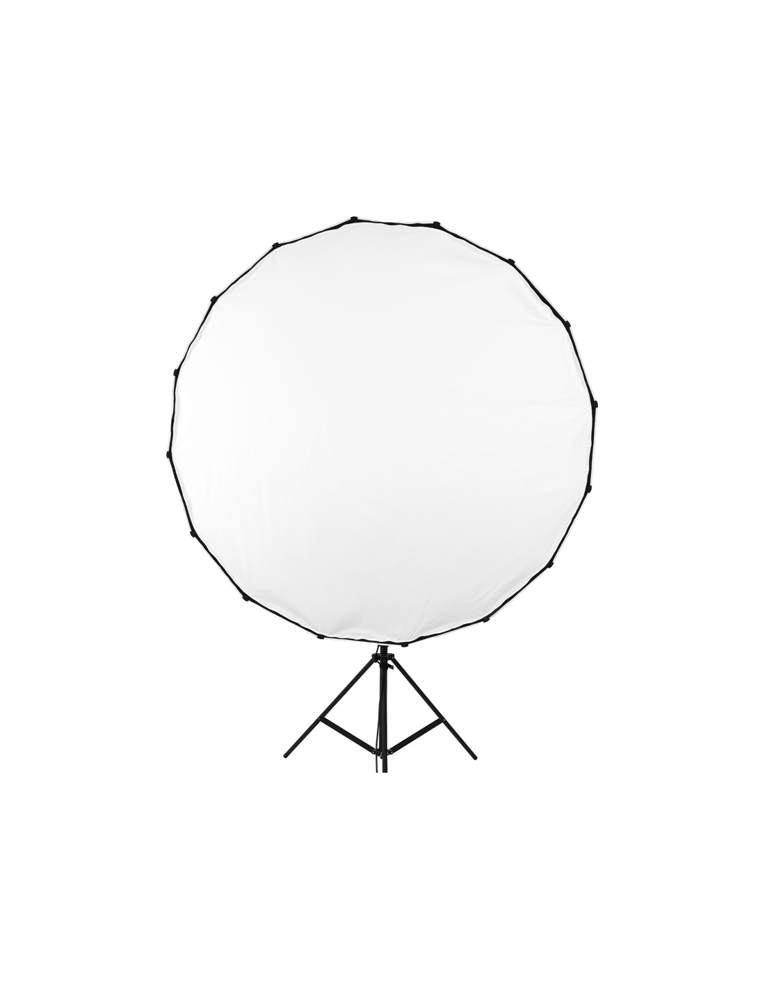 **Nanlite SB-PR-150-QMed en 16-sidet hexadecagon-formet modifikator. Strukturen i Para 150 er forstærket af 16 holdbare støttestænger, mens dens sølvfarvede indre maksimerer din lyskildes output. Den giver et fokuseret, blødt output med en kraftig, skarp kant, der giver dimension og detaljer til dit motiv samt et naturligt blikfang i deres øjne. Modifikatorens parabolske form giver desuden et betydeligt fald ved feltkanten og derfor en forbedret grad af retningskontrol, reduceret spildlys og nem udblænding.