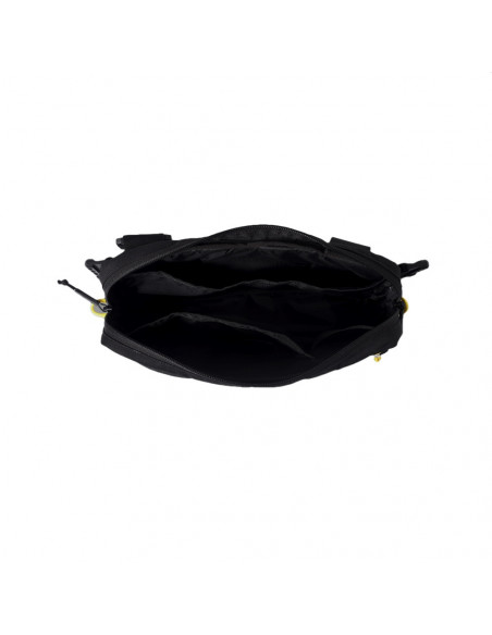 The bag has a spacious zip pocket with two slip pockets inside and a zip pocket on the outside. At the bottom, it features a MOLLE web to which you can make your own pouches or stick Velcro patches. There are also two elastic bands where you can attach an umbrella, for example.,